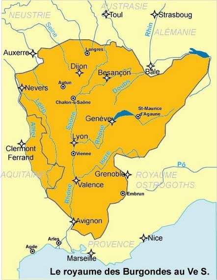 Les rois Mérovingiens (descendants de Clovis), intègrent le royaume de Burgondie au Royaume des Francs, tout en lui laissant son autonomie.
